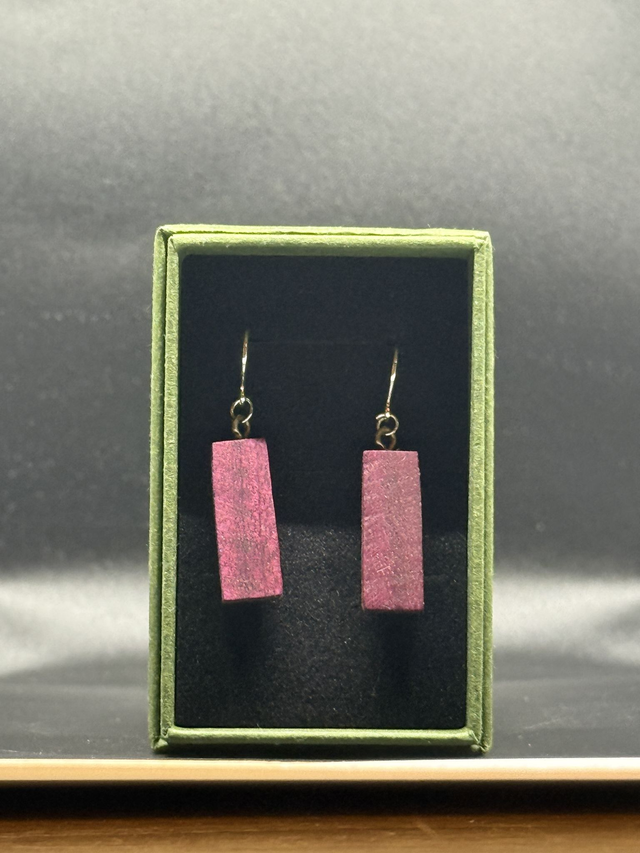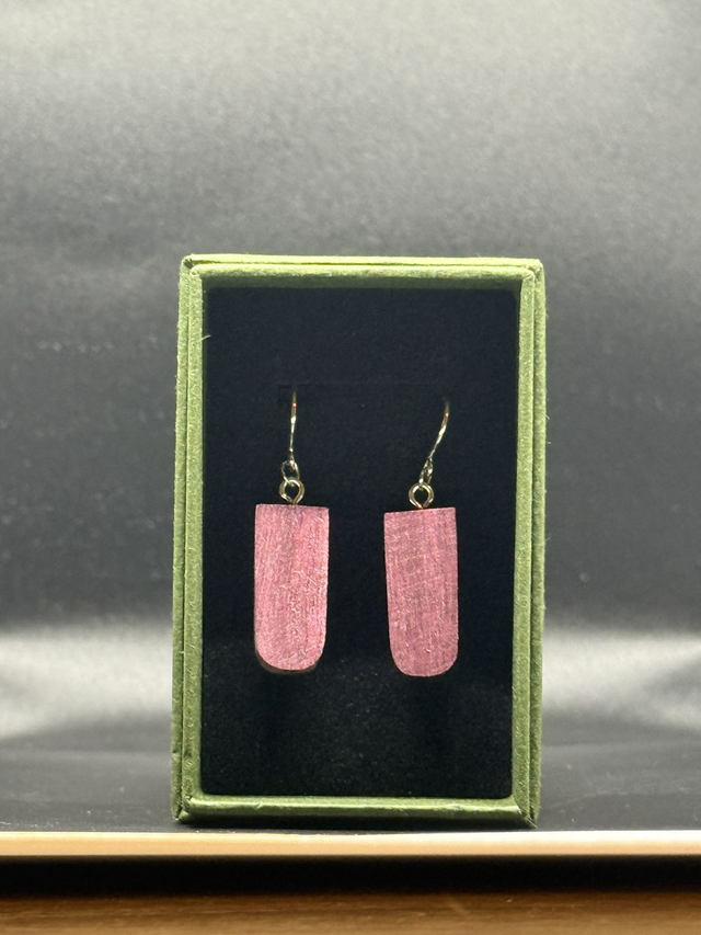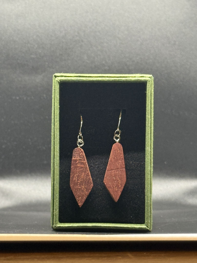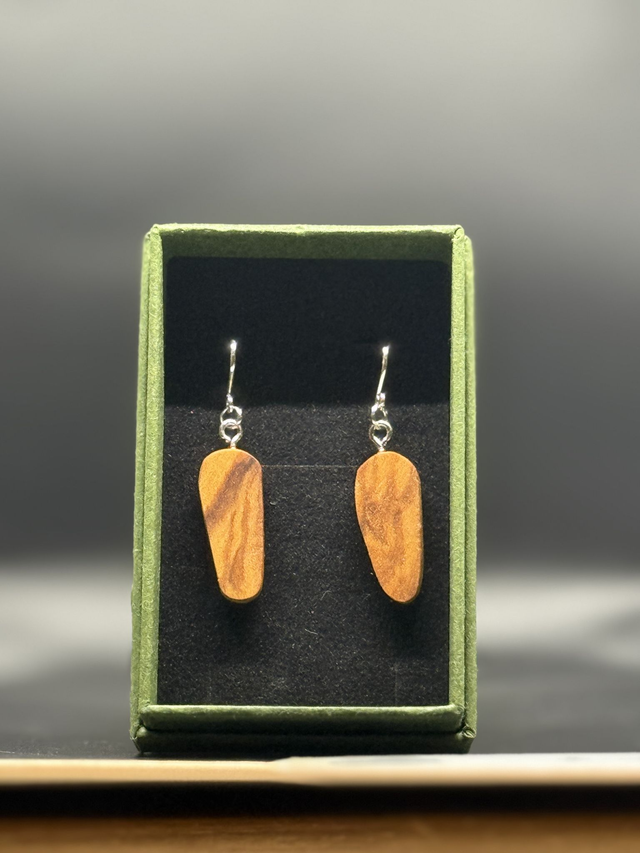 All of our earrings are handcrafted from various exotic hardwoods from all over the world. We use Sterling Silver hooks on all of our earrings, and these are sourced from the Jewellery Quarter here in Brum!